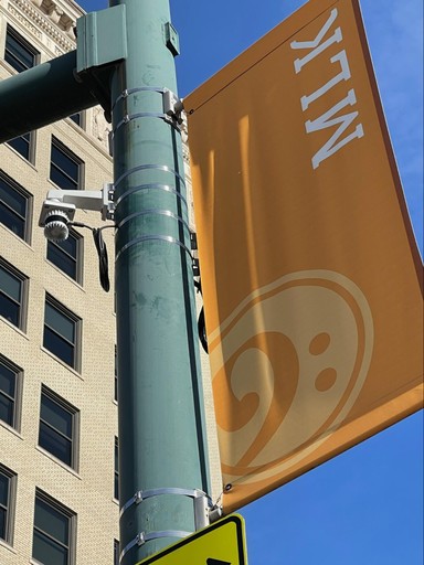 The smart city systems have been deployed at two downtown intersections that were selected for their close proximity to high pedestrian traffic locations: city parks and event spaces.