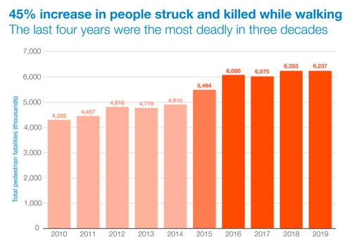 Pedestrians often get the blame when accidents happen. Reasons like jaywalking, wearing dark clothing at night, or crossing outside of the crosswalk often overshadow the root of the problem. The reality is that our roads today are dangerous for pedestrians by design. Roads are often designed for vehicles, and not for pedestrians, bicyclists, or other micro-mobility users.