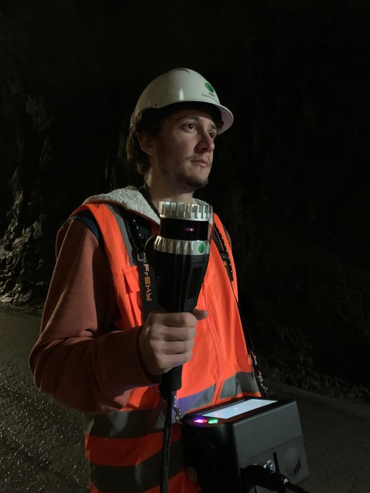 After reviewing their previous solution and other lidars on the market, Inkonova selected Ouster’s OS0 for their latest-generation handheld mapping system. They found that the OS0’s high resolution, lightweight form factor, and ultra-wide field of view gave them the edge they were looking for in the market. The size and weight of the lidar is absolutely critical for any handheld application. As you can see below, the operator mapping the mine needs to be able to hold the lidar for the entirety of the mapping process. A lighter unit alleviates strain on the operator and enables easier, more efficient operation.