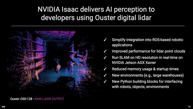 NVIDIA’s efforts to deliver performant perception technologies to the ROS developer community has made it even easier to build industrial and robotics applications using Ouster digital lidar and the NVIDIA Isaac platform. For example, one of NVIDIA’s ROS updates improved performance for lidar point clouds and improved operation in environments like warehouses.