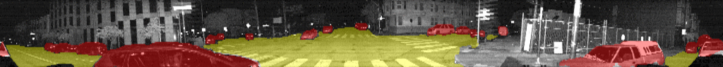 As one example, we trained a per pixel semantic classifier to identify driveable road, vehicles, pedestrians, and bicyclists on a series of depth and intensity frames from around San Francisco. We’re able to run the resultant network on an NVIDIA GTX 1060 in real time and achieved encouraging results, especially considering this is the first implementation we’ve attempted. Take a look: