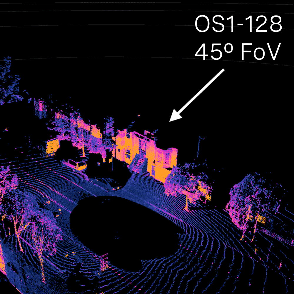 For localization specifically, the OS0 is able to capture up to 3 stories high on buildings that line the street. This visibility provides more unique features to localization algorithms, enhancing localization speed and accuracy.